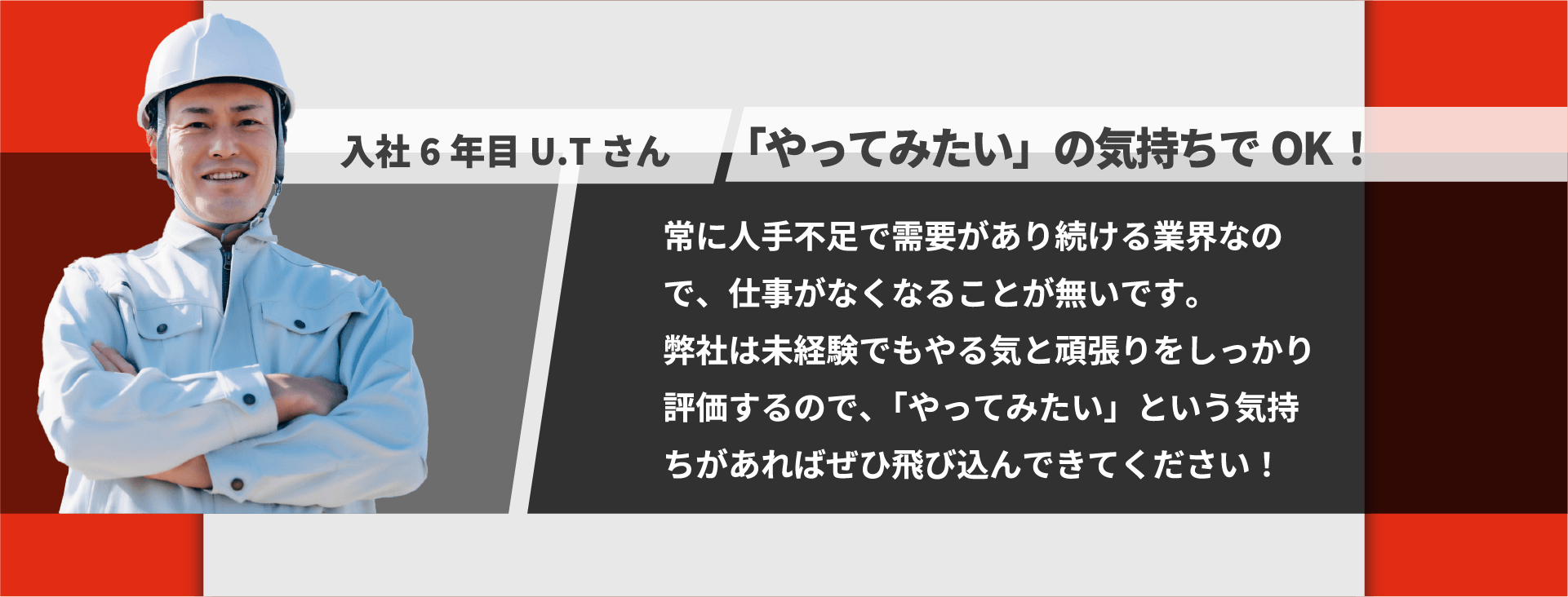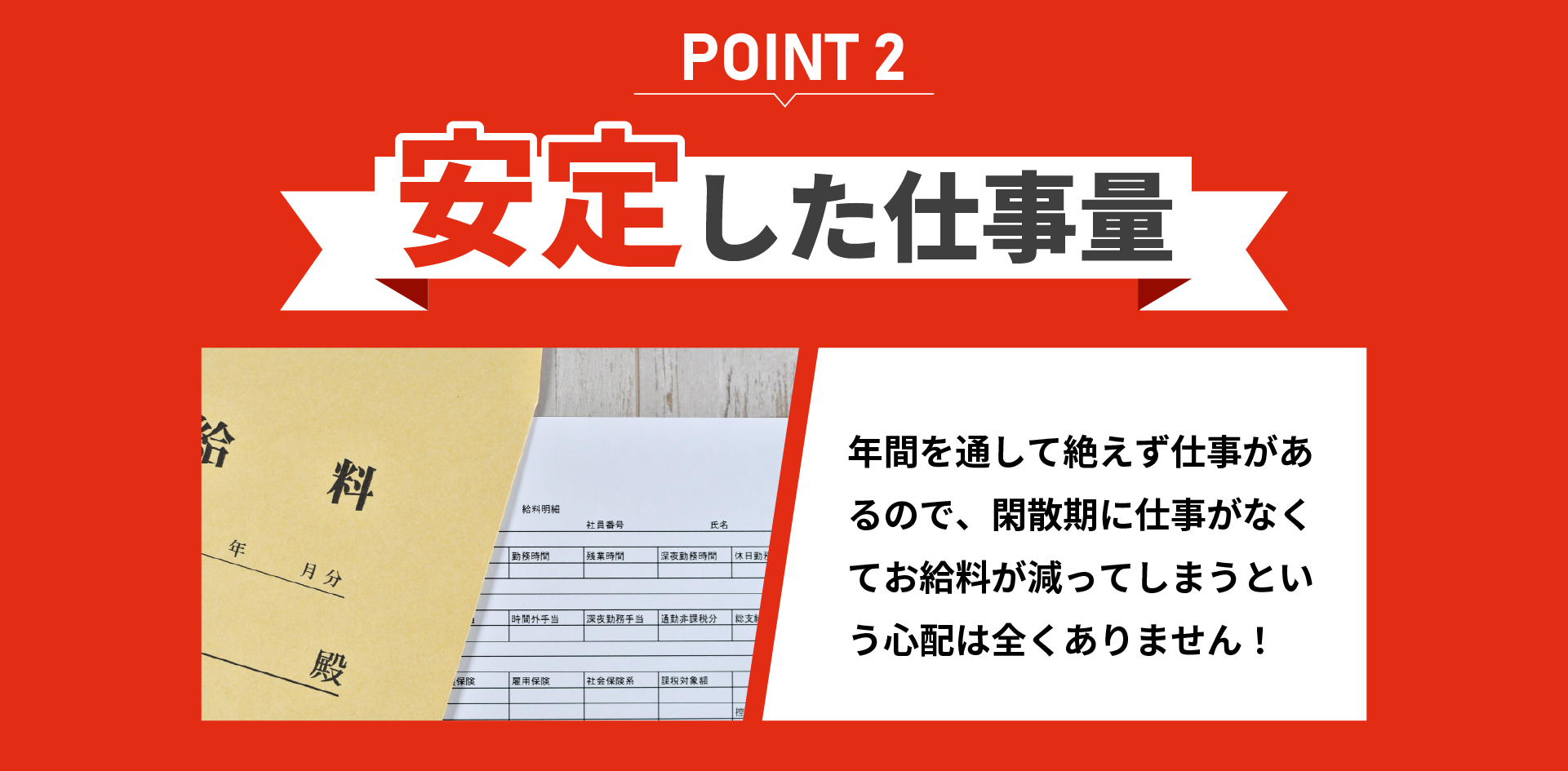 | 勤務時間 | 8:00~17:00(休憩2時間)※現場によって異なる |